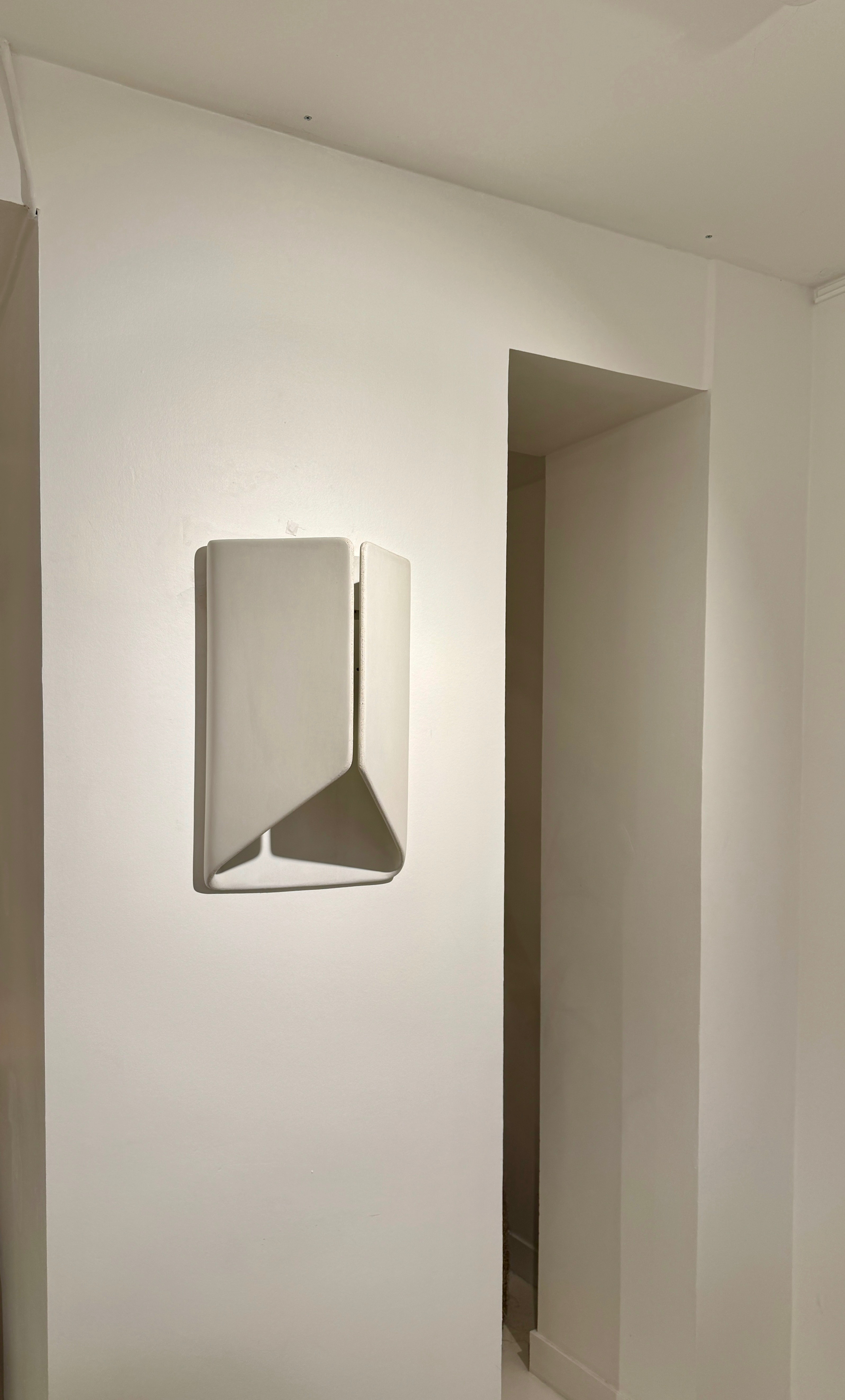 Chrysalide de béton blanc, l'applique Butterfly laisse filtrer la lumière avec douceur.