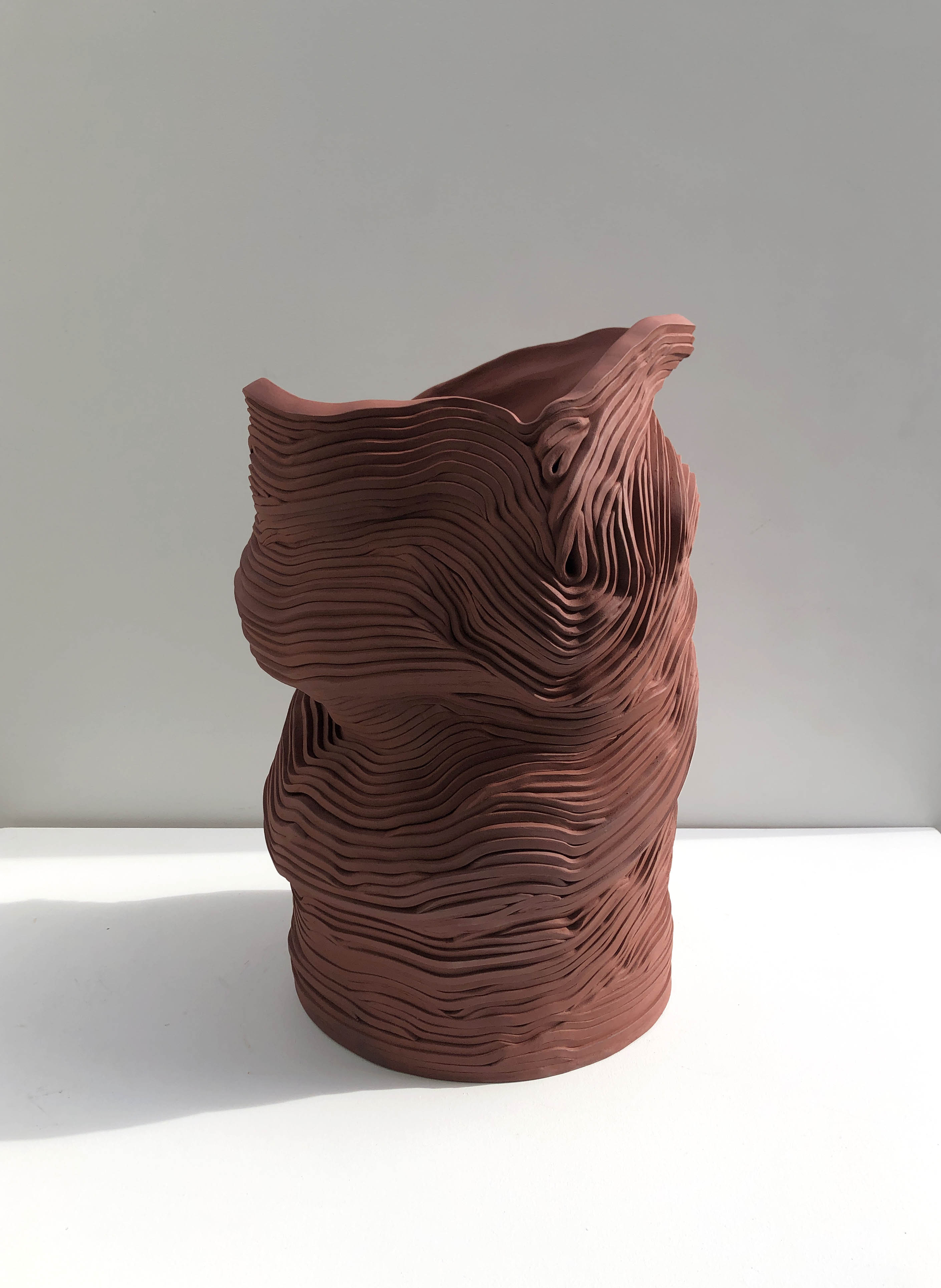 Une série de pièces composées de bandes superposées, inspirée des roches et des paysages topographiques.
